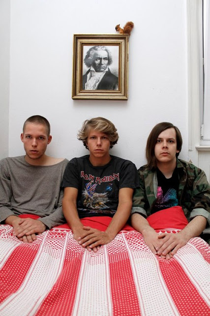 Punkrock aus Stuttgart - ja wer hätte das gedacht?! Aber da es bekanntlich keine Sachen gibt, die es nicht gibt, gibt es eben auch das und - Hand auf's Herz - so schlecht klingt das, was Die Nerven da bringen, gar nicht. Hat was Olles wie die Fehlfarben von anno Ratinger und ist angemessen rotzig. In zehn Tagen erscheint ihr zweites Album "Fluidum", daraus gibt es jetzt die nachfolgende Single "Der letzte Tanzende", nebenher auch noch eine beachtliche Zahl von Filmchen und Liedern wie das famose Lana-Del-Rey-Cover "Sommerzeit Traurigkeit" und die Stücke "Im Westen", "Nichts Neues" und "Schrapnell". Erste Platte bei Bandcamp - Tour genau dort: